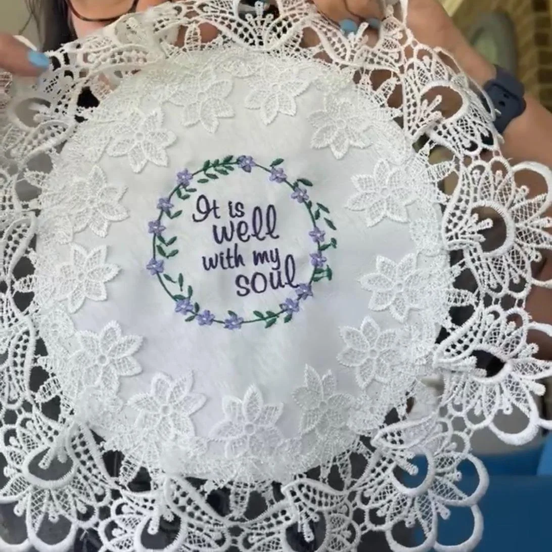 Inspired by traditional embroidered linens—long valued for their craftsmanship and spiritual significance ()—this piece blends beauty, heritage, and heartfelt message into one stunning keepsake.