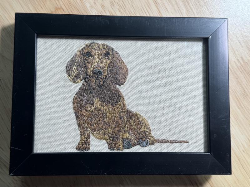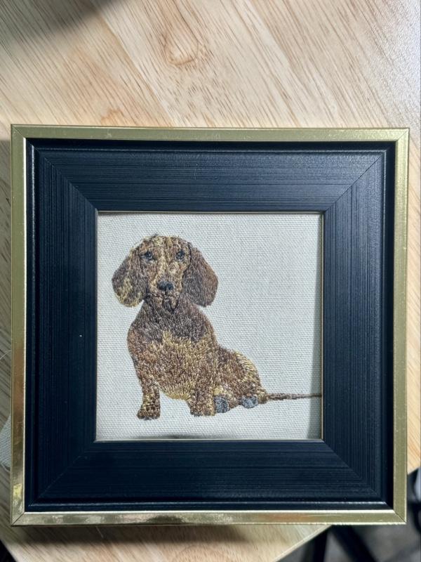 Add a touch of personality to your home decor with our Dachshund Machine Embroidered and Framed! This charming accent features a beautifully crafted machine-embroidered design that showcases your favorite canine breed. Whether it's in your living room, bedroom, or even office space – it will surely brighten up any place with its delightful appearance!