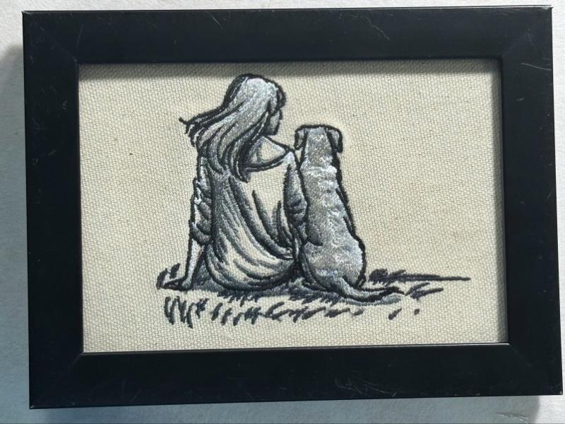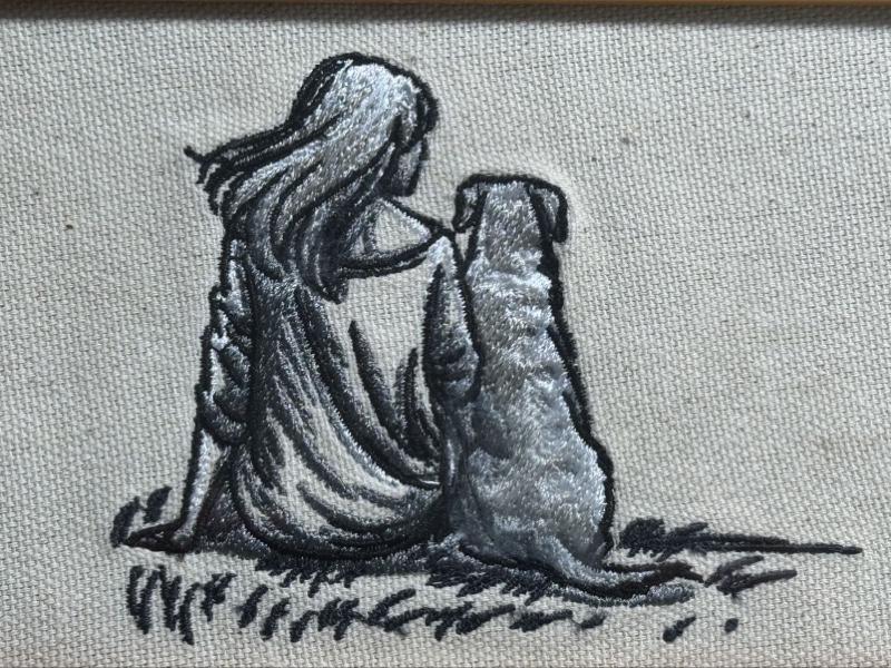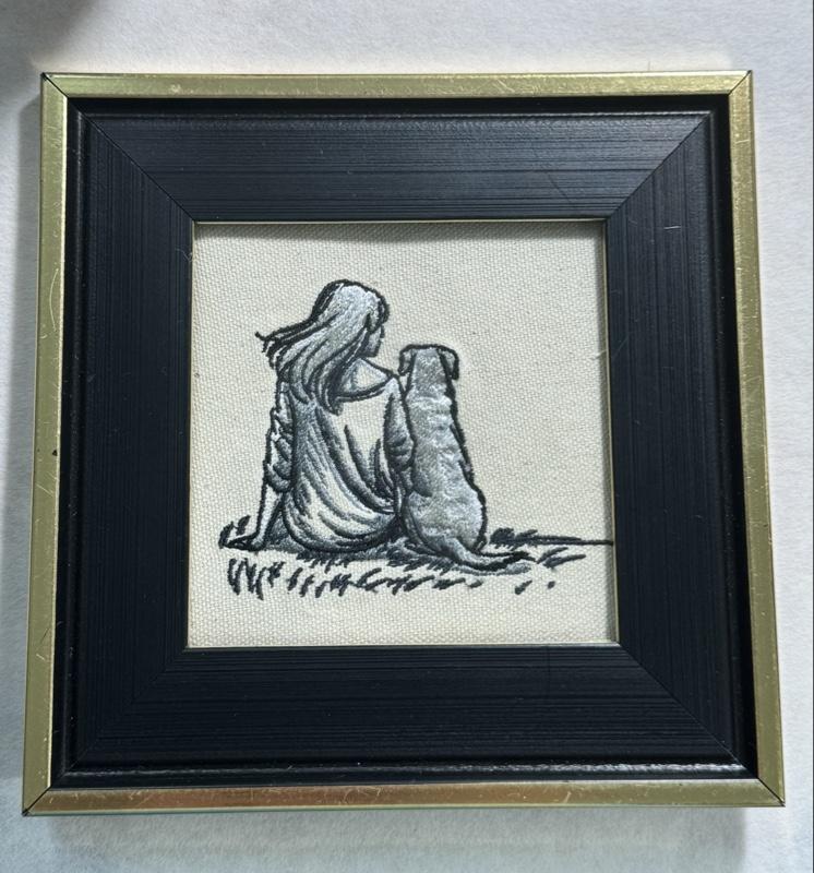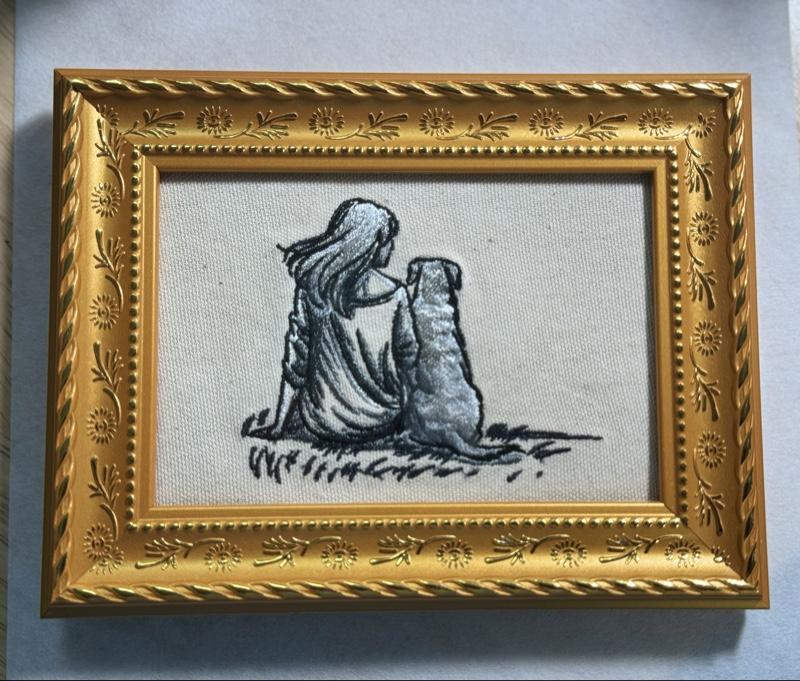 • Add a unique charm to your living space with our Girl and Her Dog machine-embroidered artwork. This delightful piece features a beautifully crafted design, perfect for any room. Brighten your living room, bedroom, or office with its charming appearance.
