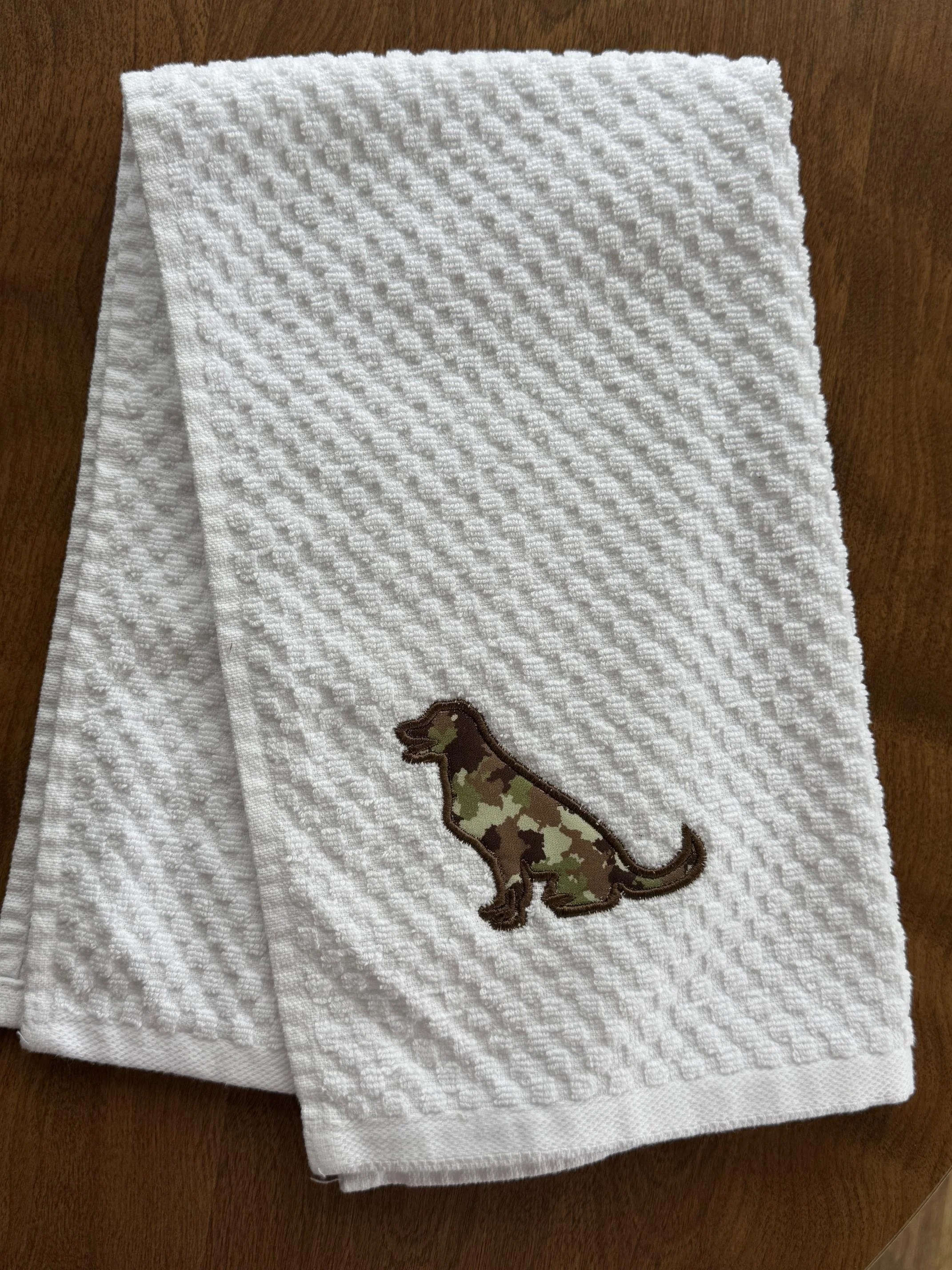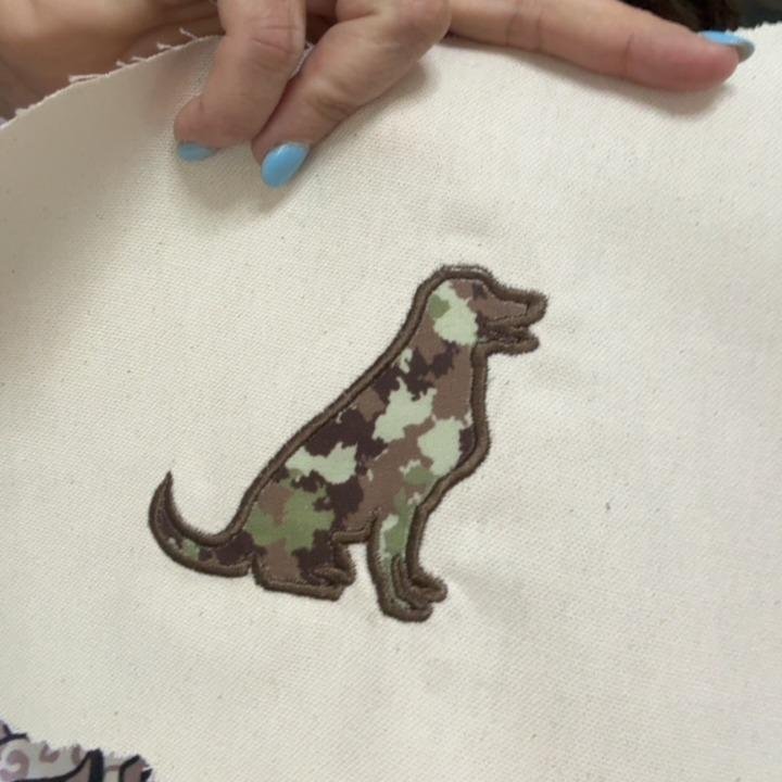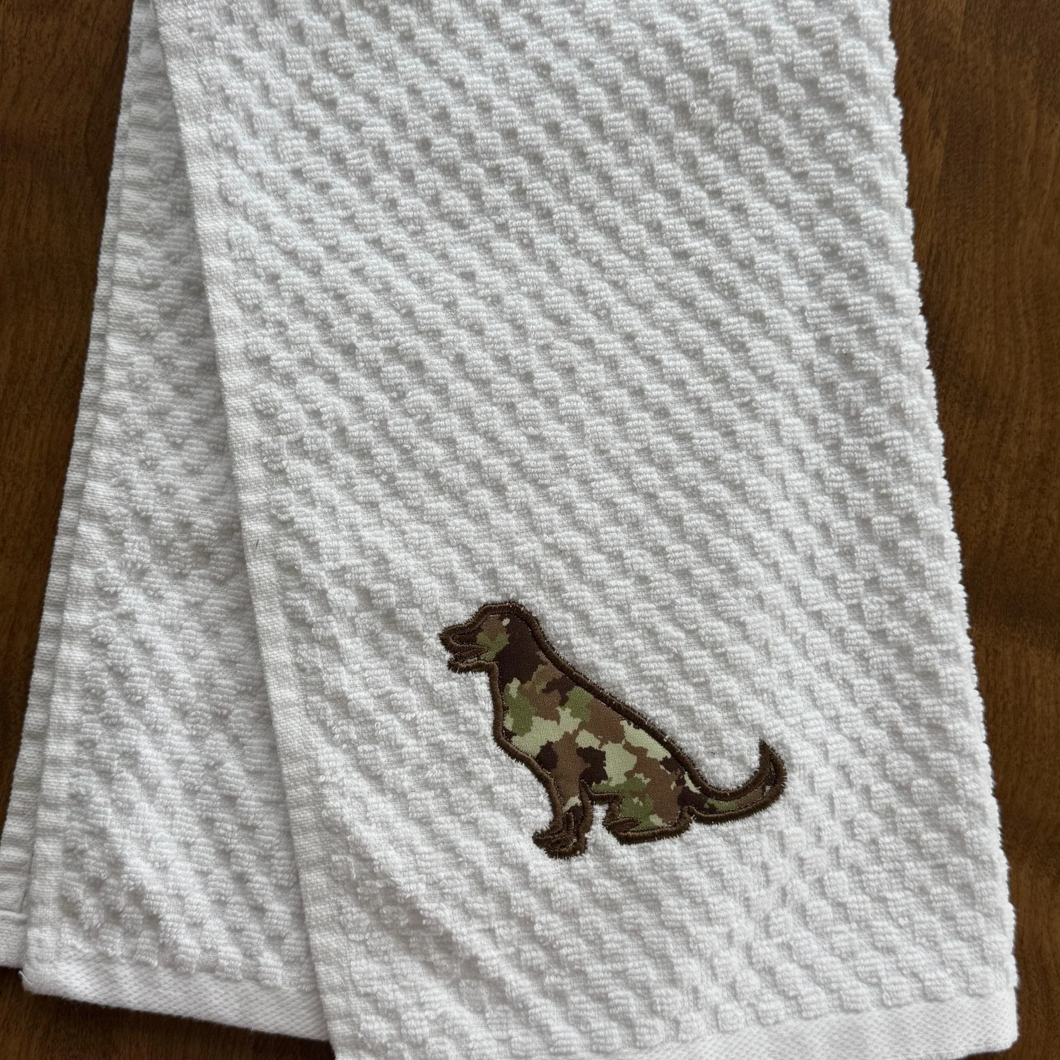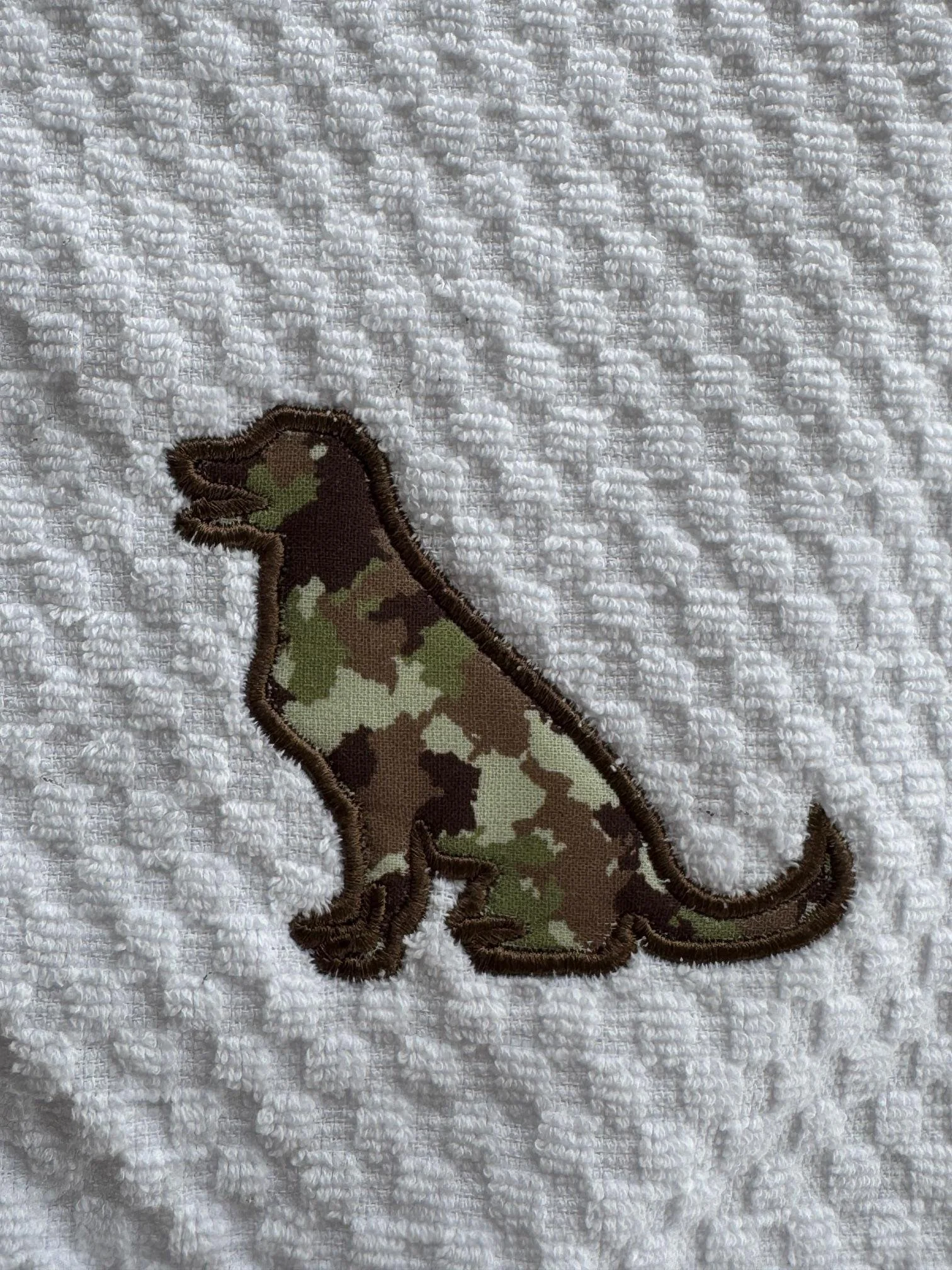 Each piece is carefully machine embroidered for a clean, durable finish that showcases the loyal Lab silhouette against rugged camo fabric.
