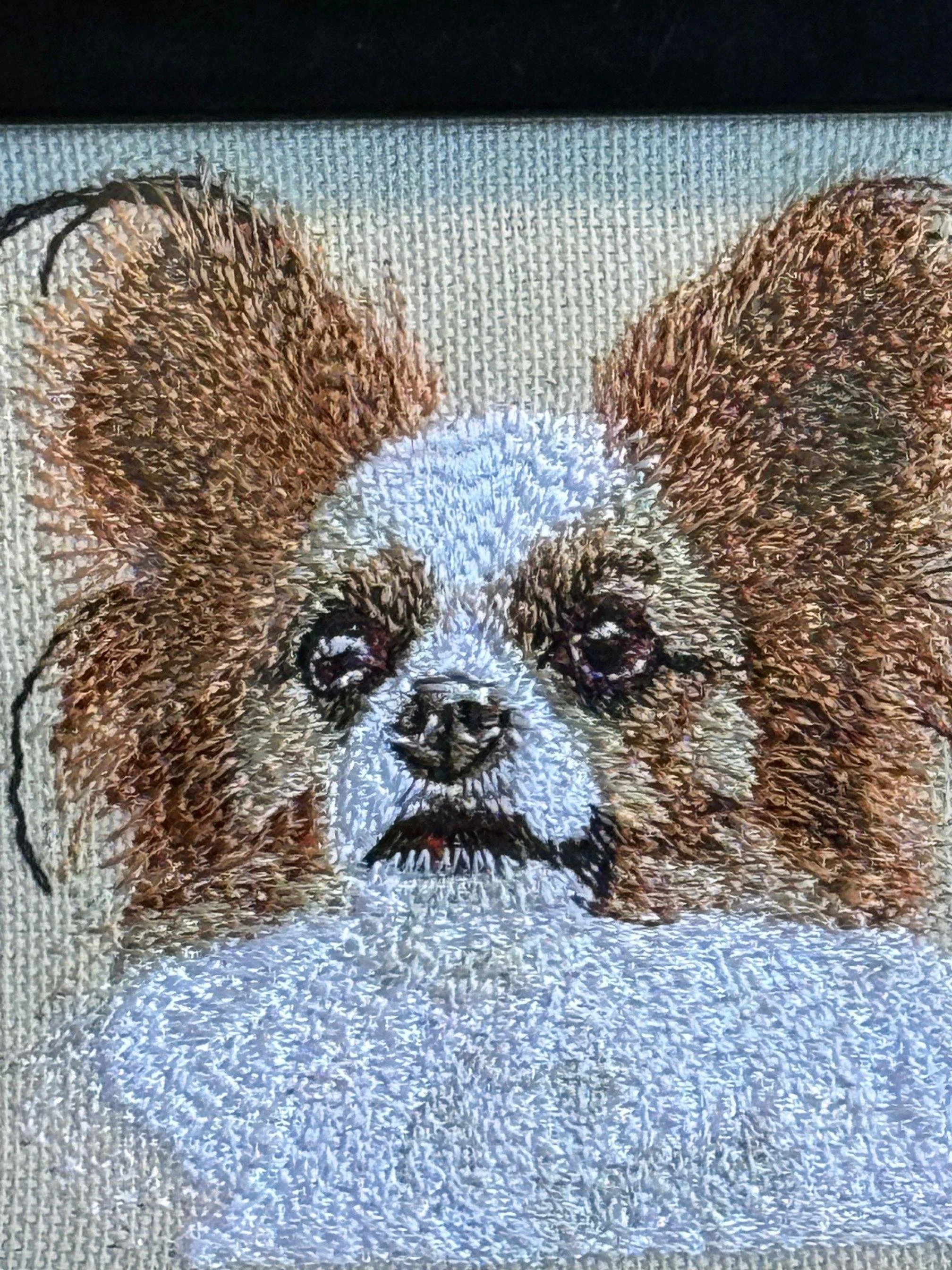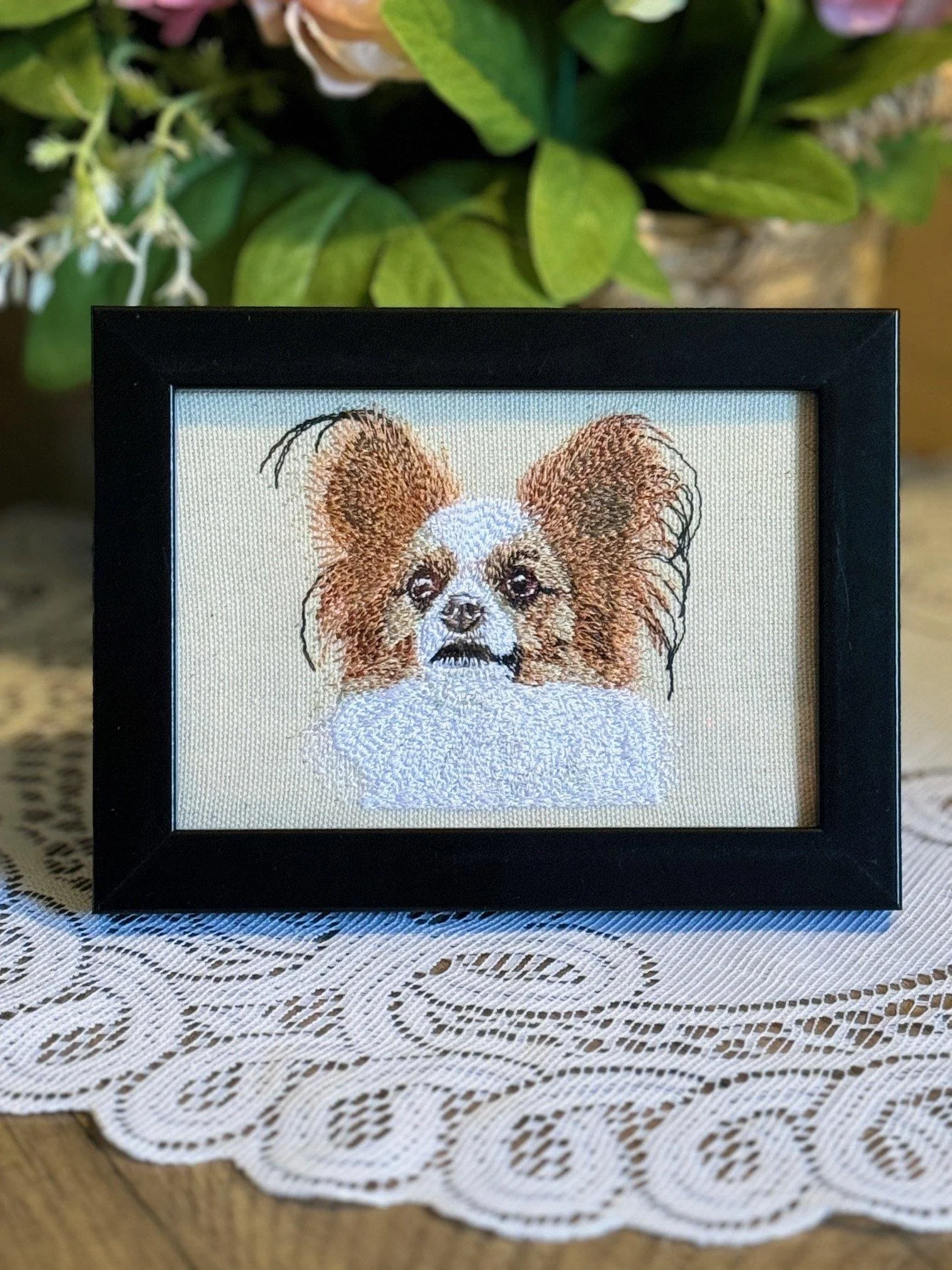 Papillon Machine Embroidered and Framed! Other Designs and Breeds Available!