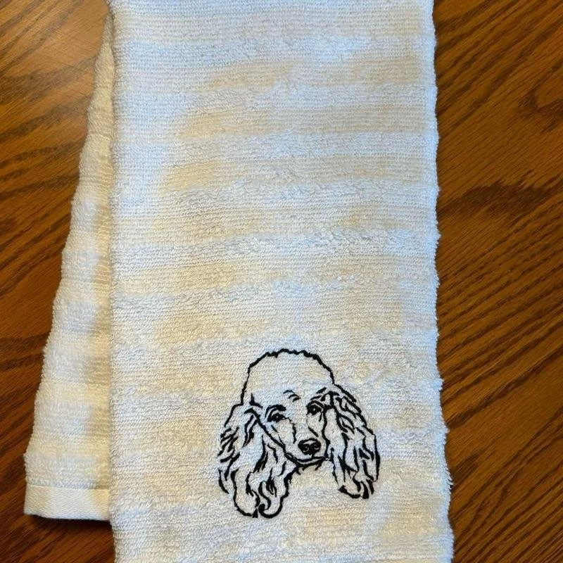 - Design:These 16x24” hand towels feature a machine-embroidered dog breed design. 🪡