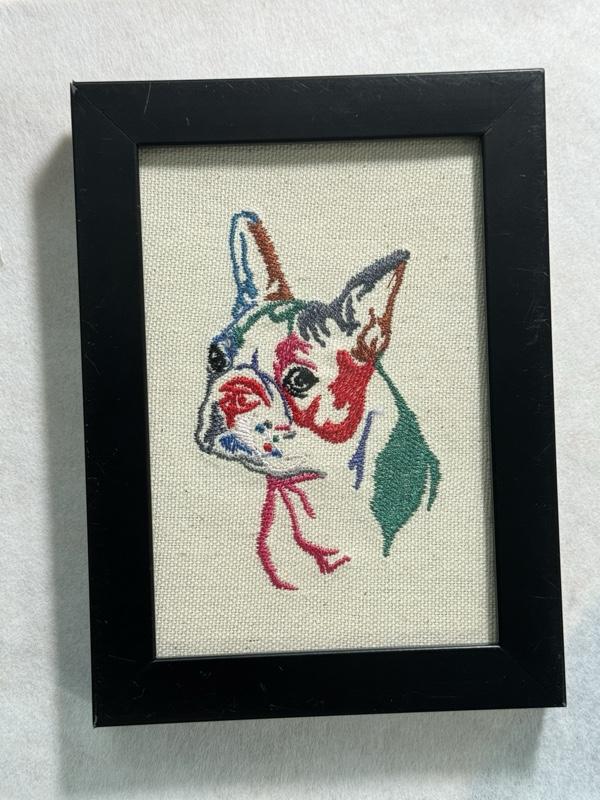 ✨ Elevate your home with our Frenchie Machine Embroidered and Framed artwork! This piece showcases the beauty of the French Bulldog, crafted with intricate embroidery. It captures every detail, making it a stunning addition to any room. Choose your frame to add elegance and celebrate your love for this breed.